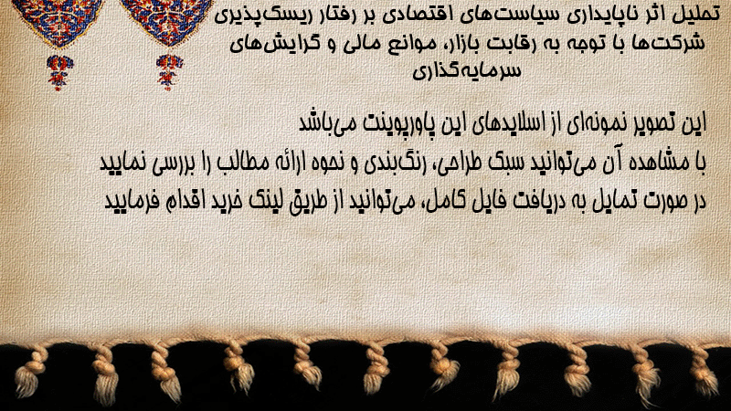 پاورپوینت تحلیل اثر ناپایداری سیاستهای اقتصادی بر رفتار ریسکپذیری شرکتها با توجه به رقابت بازار، موانع مالی و گرایشهای سرمایهگذاری