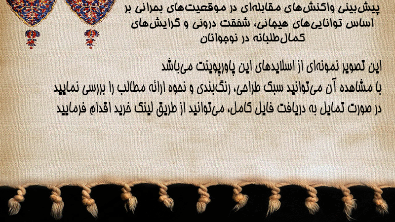 پاورپوینت پیشبینی واکنشهای مقابلهای در موقعیتهای بحرانی بر اساس تواناییهای هیجانی، شفقت درونی و گرایشهای کمالطلبانه در نوجوانان