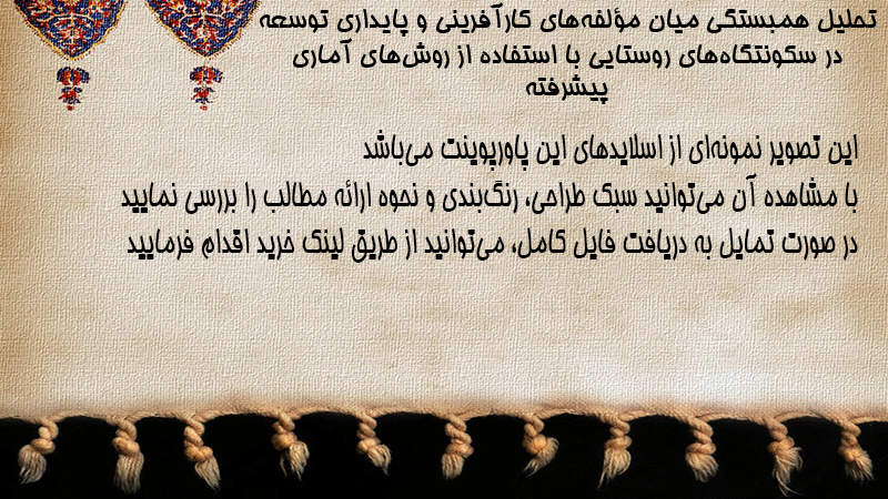 پاورپوینت تحلیل همبستگی میان مؤلفههای کارآفرینی و پایداری توسعه در سکونتگاههای روستایی با استفاده از روشهای آماری پیشرفته