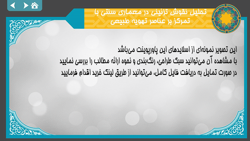 پاورپوینت تحلیل نقوش تزئینی در معماری سنتی با تمرکز بر عناصر تهویه طبیعی