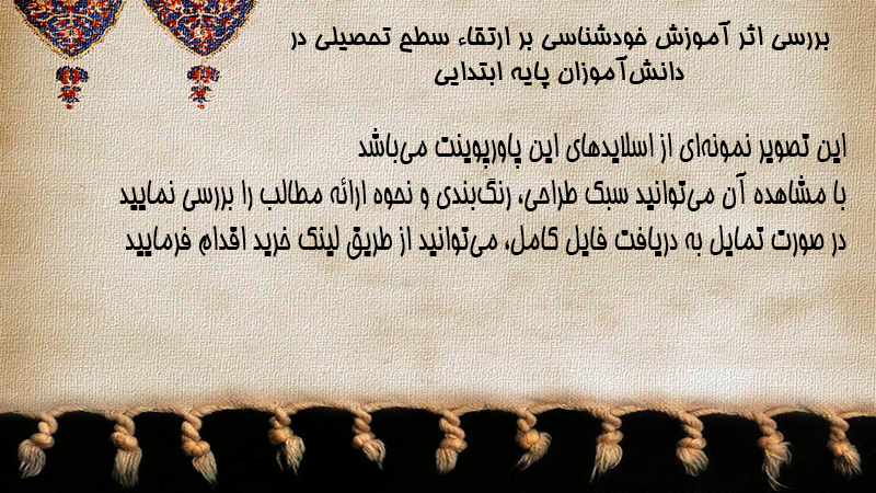 پاورپوینت بررسی اثر آموزش خودشناسی بر ارتقاء سطح تحصیلی در دانشآموزان پایه ابتدایی