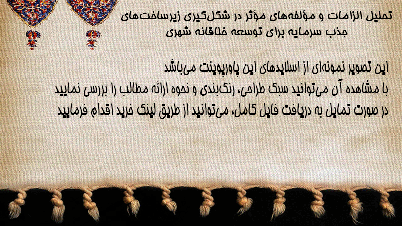 پاورپوینت تحلیل الزامات و مؤلفههای مؤثر در شکلگیری زیرساختهای جذب سرمایه برای توسعه خلاقانه شهری