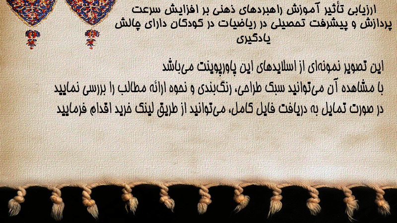 پاورپوینت ارزیابی تأثیر آموزش راهبردهای ذهنی بر افزایش سرعت پردازش و پیشرفت تحصیلی در ریاضیات در کودکان دارای چالش یادگیری