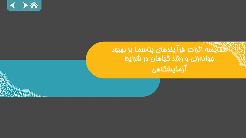 پاورپوینت مقایسه اثرات فرآیندهای پلاسما بر بهبود جوانهزنی و رشد گیاهان در شرایط آزمایشگاهی
