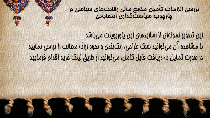 پاورپوینت بررسی الزامات تأمین منابع مالی رقابتهای سیاسی در چارچوب سیاستگذاری انتخاباتی