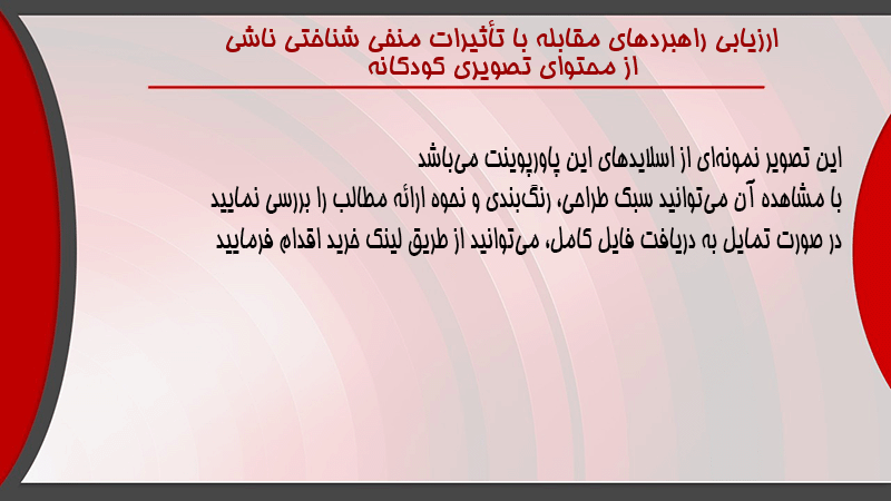 پاورپوینت ارزیابی راهبردهای مقابله با تأثیرات منفی شناختی ناشی از محتوای تصویری کودکانه