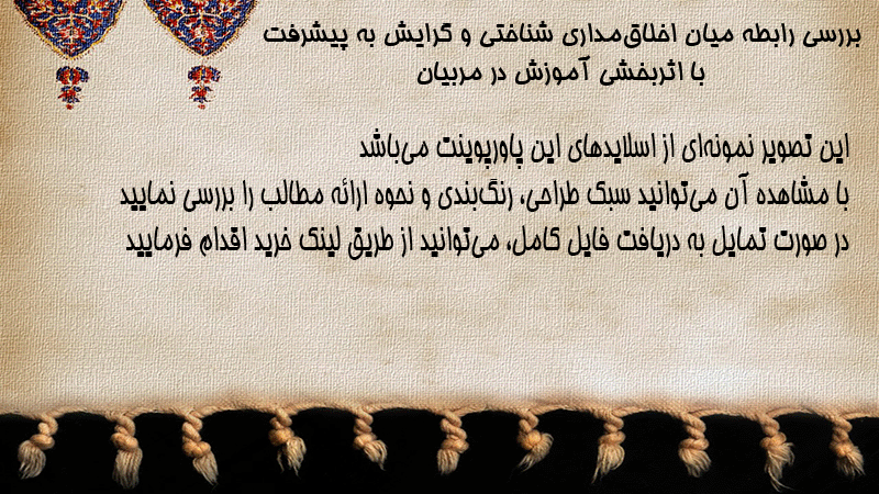 پاورپوینت بررسی رابطه میان اخلاقمداری شناختی و گرایش به پیشرفت با اثربخشی آموزش در مربیان