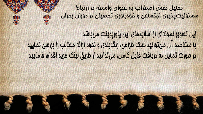پاورپوینت تحلیل نقش اضطراب به عنوان واسطه در ارتباط مسئولیتپذیری اجتماعی و خودباوری تحصیلی در دوران بحران