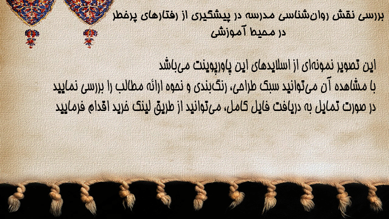 پاورپوینت بررسی نقش روانشناسی مدرسه در پیشگیری از رفتارهای پرخطر در محیط آموزشی