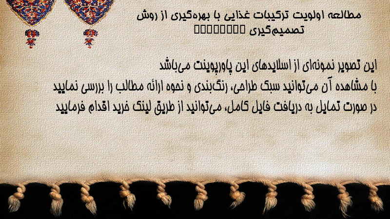 پاورپوینت مطالعه اولویت ترکیبات غذایی با بهرهگیری از روش تصمیمگیری TAXONOMY