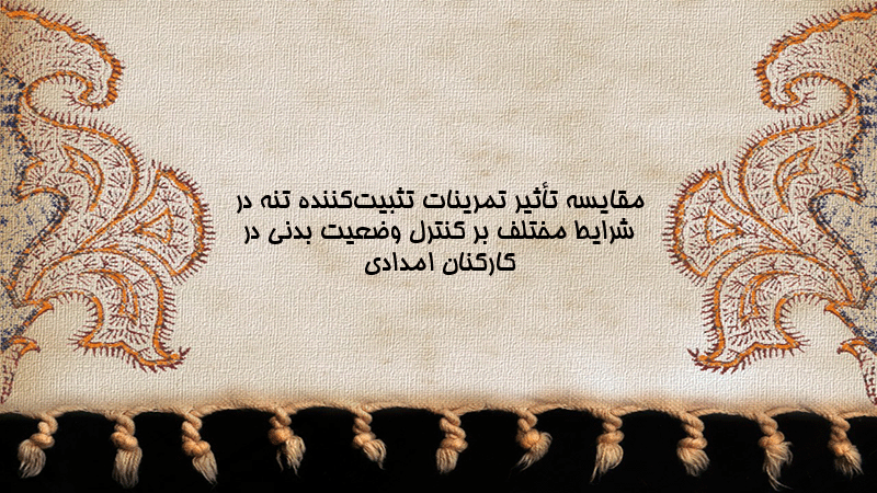 پاورپوینت مقایسه تأثیر تمرینات تثبیتکننده تنه در شرایط مختلف بر کنترل وضعیت بدنی در کارکنان امدادی