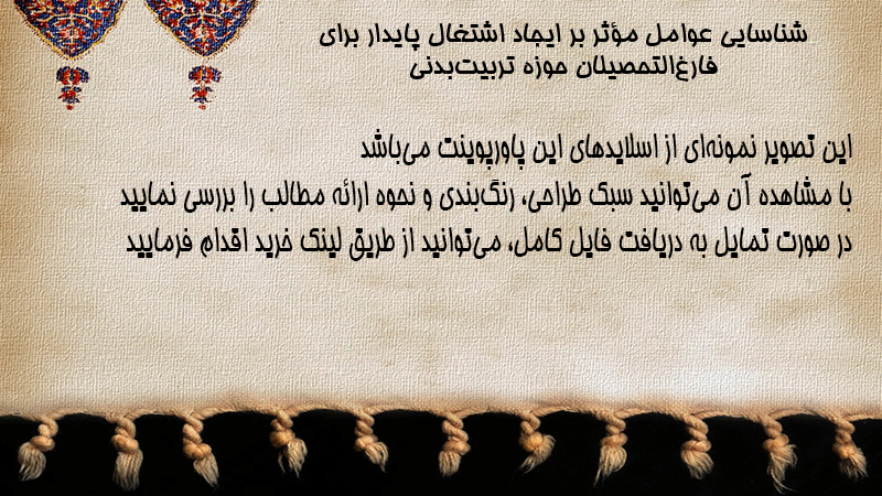 پاورپوینت شناسایی عوامل مؤثر بر ایجاد اشتغال پایدار برای فارغالتحصیلان حوزه تربیتبدنی