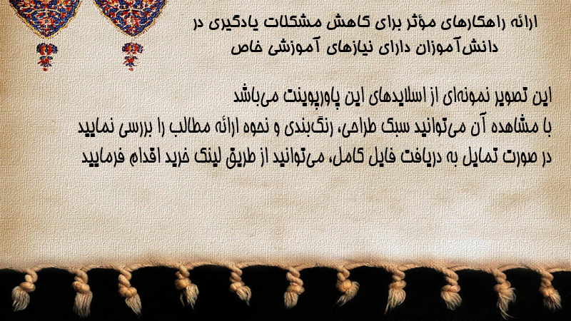 پاورپوینت ارائه راهکارهای مؤثر برای کاهش مشکلات یادگیری در دانشآموزان دارای نیازهای آموزشی خاص